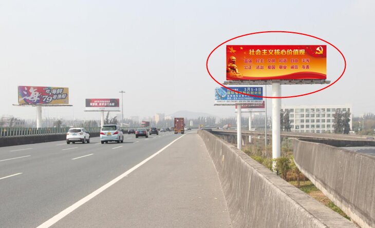 媒体编号:K16+300-麻涌互通(深圳方向) 媒体类型:喷绘+射灯,夜间照明4小时/日 媒体规格:18m(W)*6m(H)*2面=216m² 人车流量:30万辆/日 媒体报价:请咨询第一户外客服