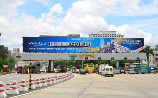 媒体位置优势: 位于富安收费站顶正上方,往来车辆密集,大面积画幅,正面视觉冲击,车流减速,视野开阔,有效延长广告观赏时间,广告效果优秀; 是深圳大特区通往龙岗、平湖商业中心、观澜中心区的主要快速干道 ; 周边创新型产业园区集群(如宝安高新技术产业园、华为产业园、平湖华南城商品批发集散中心、上李朗工业园、家电产业园、金积嘉科技园等),受众层次高; 连接亚洲最大网球场与世界第一大高尔夫球会—— 观澜湖会员及中高管理层。 |