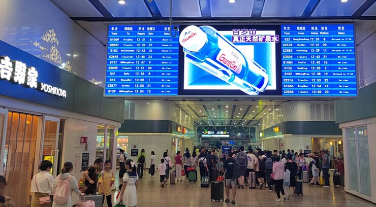 媒体位置/形式:月台层刷屏机 媒体数量:55块,双面 屏体尺寸:65寸(1428.48*803.52)