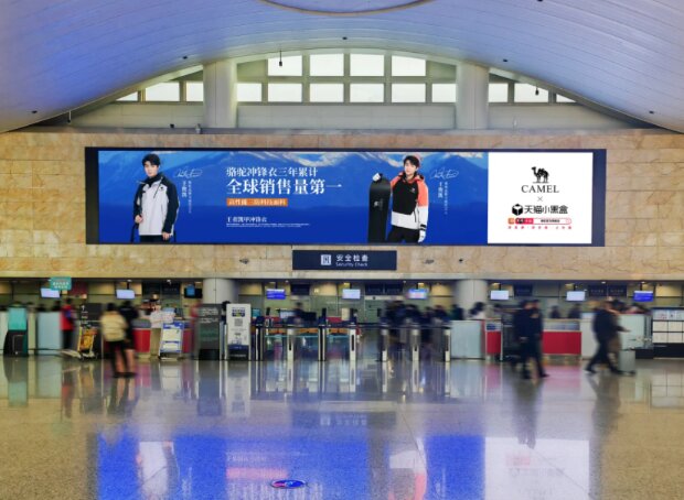 骆驼冲锋衣-杭州机场LED屏广告