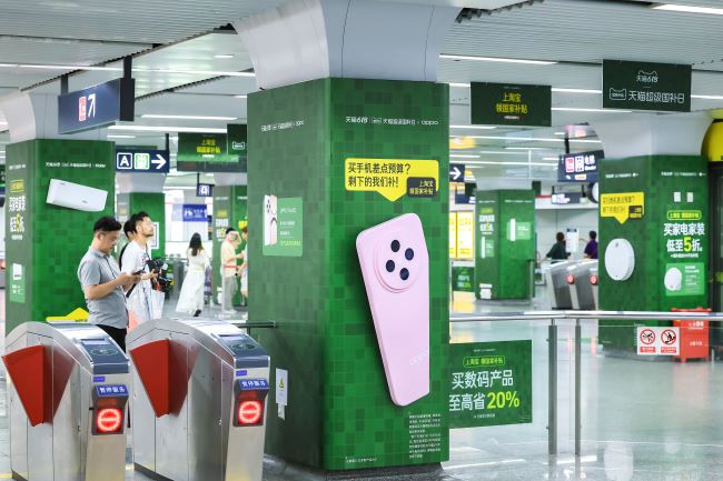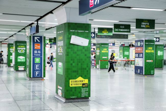 杭州地铁凤起路站站厅层品牌森林广告通过包柱与吊旗的组合,在站厅层构建了一个多维度的品牌展示空间。立柱通常位于乘客动线的核心区域或关键节点。创意包柱广告因此能够实现多角度、近距离的曝光,确保信息高效传递。结合吊旗从上至下的视觉引导,共同在有限的站厅空间内营造出丰富多元、活力满满的视觉盛景。多根立柱同时进行创意包柱,形成了规模化的媒体矩阵。这种阵列式布局能对穿行其间的乘客产生持续的视觉影响,营造出强烈的品牌阵势和包围感。