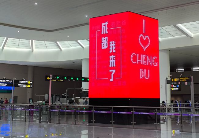 成都地铁天府机场站厅层四面立柱LED大屏广告