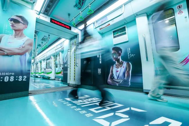 南宁地铁超级品牌列车广告车厢内壁(墙)、地面(地)、车窗(窗)乃至顶部(天)都被同一品牌的创意画面系统化覆盖,构建出一个排除其他信息干扰的品牌独有空间。乘客在地铁车厢内的平均停留时间较长。全景式广告为乘客提供了从整体氛围感受到局部细节阅读的完整机会。丰富的媒体点位可以从不同角度、不同接触点反复传递品牌核心信息,实现从品牌认知、产品了解到形象感知的 多层次、深度沟通,远超瞬时曝光的效果。