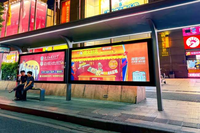佛山公交候车亭站台灯箱广告双面发布的灯箱能够同时覆盖 站台内候车的乘客与站台外途经的行人、非机动车及车辆内的潜在受众。乘客在候车亭平均有数分钟的固定停留时间,处于相对空闲和信息敏感期。矗立于其正前方的灯箱广告,处于一米至数米的黄金阅读距离内,视觉冲击直接,信息传递完整。相较于移动中被快速浏览的广告,此场景下的沟通更为深入和有效。