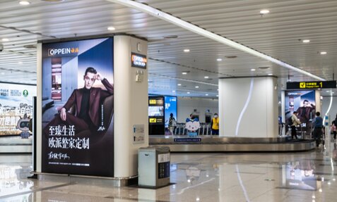 媒体位置/形式:一层国内到达迎宾厅户外包柱灯箱