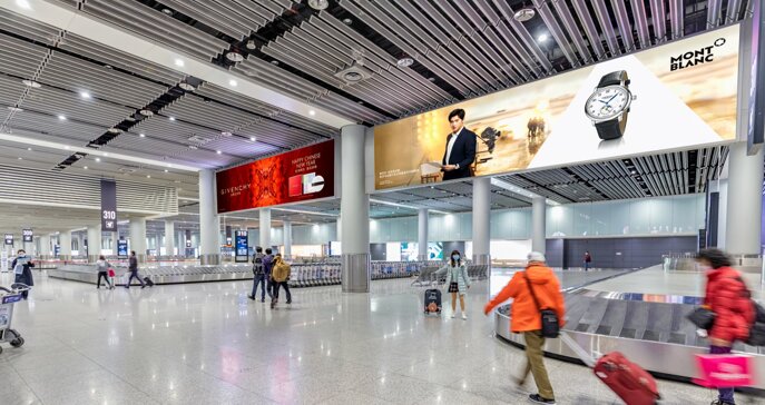 媒体位置:T3航站楼到达行李厅柱体间双面灯箱