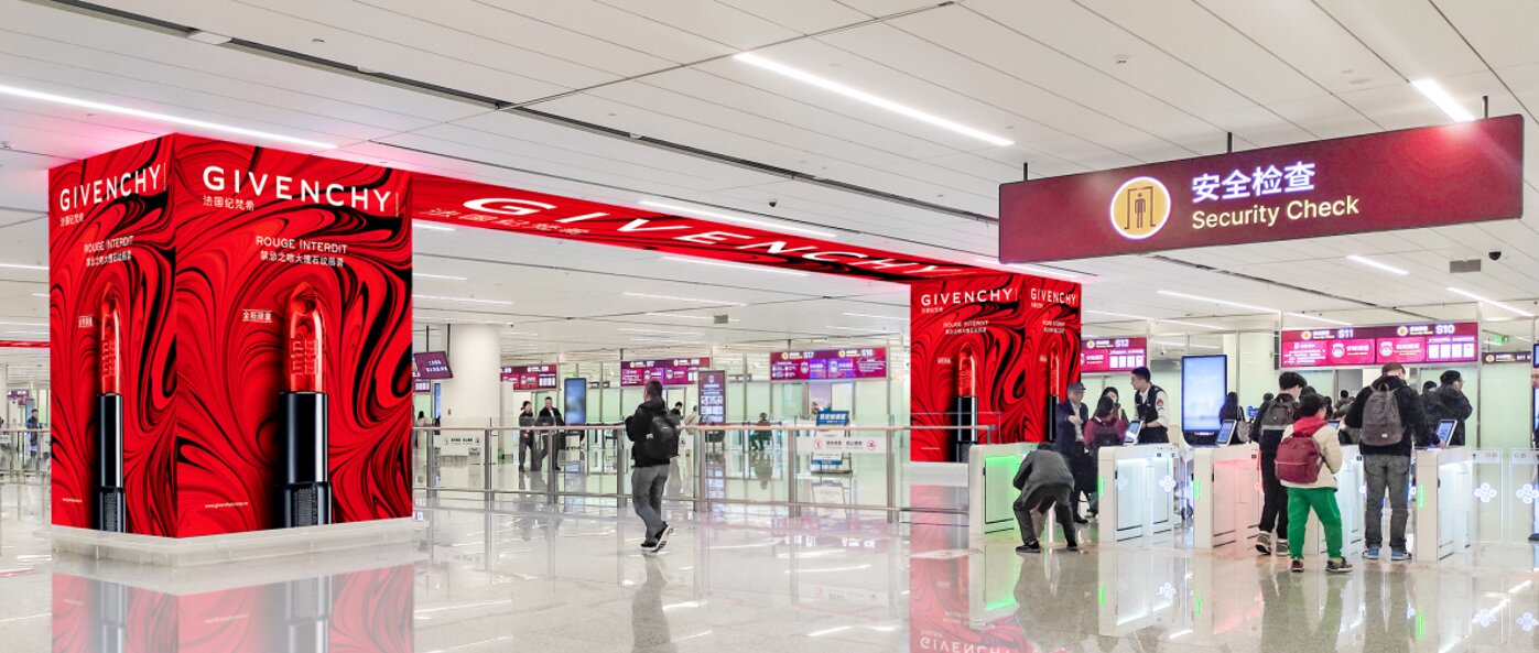 媒体位置:T2航站楼国内出发值机大厅安检正上方