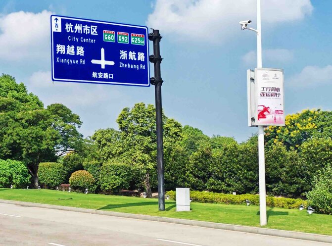 杭州萧山机场广告投放案例图-户外路灯杆灯箱