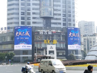 媒体位置说明: 位于万商云集的温州大南门商圈,具备温州最为核心的商圈人气。人民路沿街百货是众多服饰、餐馆、娱乐、休闲购物等精品的载体。为温州最为高端、大气、上档次的综合性精品商圈。周边有开太百货、国际大酒店名牌城、银泰百货、好又多超市、纱帽河女人街、第一桥商业街、嘉乐广场、苏宁电器等; 地处温州人民东路与大南路交汇处,汇聚高密度的人流、车流、物流与信息流; 显示屏位于离地8m的高度,有着最佳的视觉角度,视距可达500m以上。画面色彩鲜艳饱满、线条流动顺畅、表现立体感强,可配合任意广告宣传片达到强烈的视觉冲击效果。  |