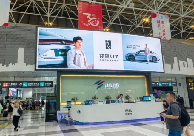 珠海机场二层出发大厅中央服务台上方LED大屏广告