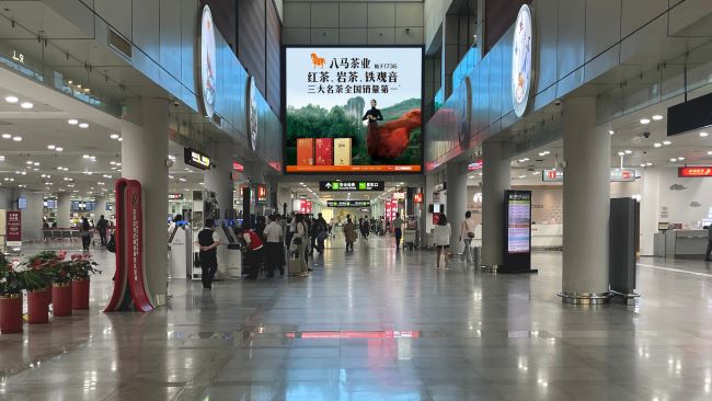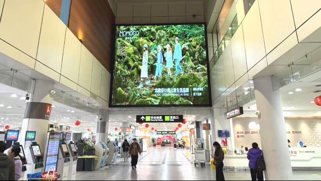 泉州晋江机场国内出发中央通道上方墙面LED大屏广告正处于旅客行进动线的核心,高空位置的设置确保了广告信息在较远距离外就能被识别,实现了中远距离的视觉触达。大厅中央的位置使屏幕成为整个空间的视觉焦点,无遮挡的展示环境进一步增强了广告的视觉效果。6.4米高、5.76米宽的屏幕尺寸在开阔的机场环境中仍能保持显著的视觉存在感,为品牌创造了良好的展示条件。高频率的循环播放策略能够充分利用旅客通过中央通道的时段,对不同批次的旅客进行反复提示。