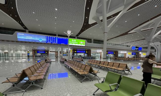 重庆东站高架候车层商业夹层信息屏两侧广告灯箱单块灯箱规格接近9米宽、2.6米高,四块组合形成总宽超过34米的超宽幅视觉阵列。在开阔的现代化候车大厅中,这一组合能形成强大的视觉包围感和品牌气势,有效传递品牌实力与高端形象。旅客在候车时,视线会反复、主动地聚焦于中央信息屏,以确认车次、时间和站台。广告灯箱紧邻信息屏两侧,自然占据了旅客视线的核心落点区域。