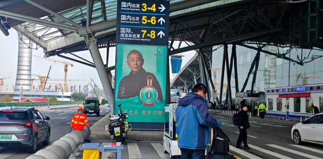 济南机场航站楼户外引桥送客平台车道落地立牌灯箱广告