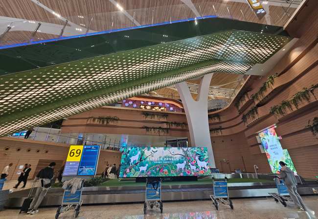广州机场T3国内到达行李提取转盘上方双面LED大屏广告