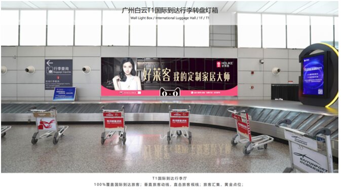 广州机场到达行李转盘墙面灯箱广告