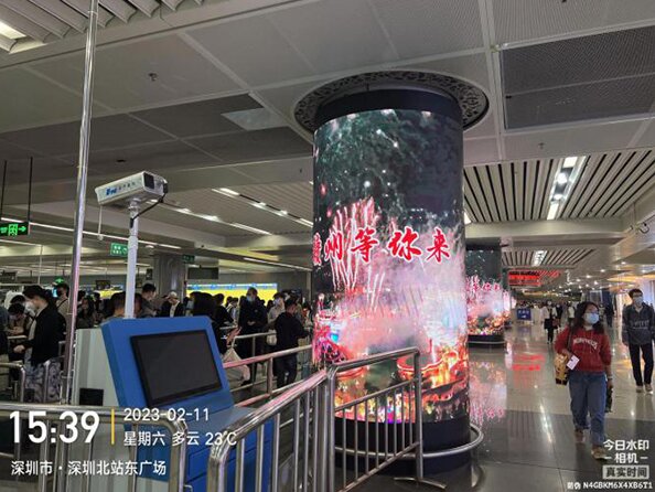 深圳北站1层换乘大厅LED立柱广告