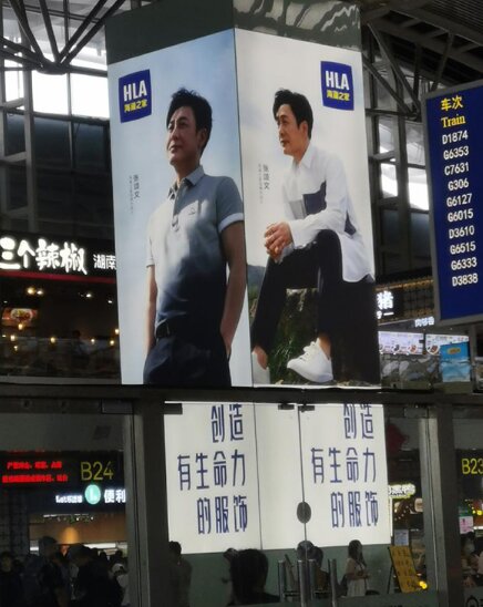 随着电视剧狂飙的热播,张颂文老师凭借演技不仅引发网络上的热议,线下也能经常看到他的代言广告。全仔不得不感慨:海澜之家,您不仅懂男人的衣橱,您也懂广告的。广州南站出发层候车大厅巨型包柱灯箱广告让代言人的气质和品牌理念完美传达给了消费者。简洁而不简单的巨幅画面使品牌形象深入人心。机场和高铁站是商旅人士全年经常多次打卡的交通枢纽,广州南站广告位也常年是男装品牌广告投放的黄金位置。