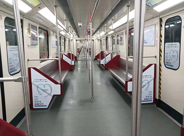 在5月17日世界高血压日来临之际,广东省心血管病中心在广州地铁1号线列车车厢内投放公益广告宣传,并有10块灯箱分别在烈士陵园、体育西等10个站点进行广告宣传。