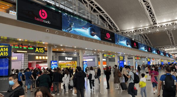 广州南站候车大厅候车层检票口上方LED大屏广告
