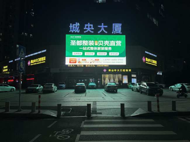 佛山兆祥路与文华北路交界处红绿灯口城央大厦LED大屏广告大尺寸屏幕在开阔的路口环境中具有天然的视觉冲击力,能够从多角度吸引行人与驾驶者的注意。屏幕设置于建筑外立面,正对红绿灯路口,拥有无遮挡的广阔视野。当车辆在路口等待红灯时,屏幕内容能获得较长时间的静态展示机会。这种高频率的播放方式,能够对日间不同时段经过的受众进行反复提示,有助于强化品牌认知。