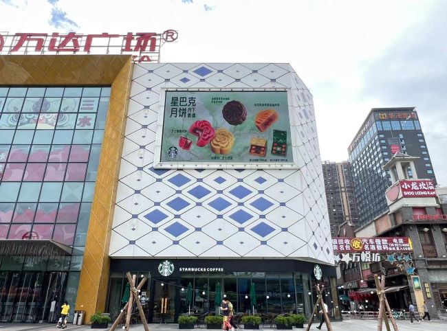 佛山三水万达广场外墙LED大屏广告规格近100平方米,大尺寸屏幕在商业广场环境中具有显著的视觉存在感,能够有效吸引广场人群及道路通行者的注意力。其次,屏幕设置于建筑外立面主要入口附近,正对开阔区域,确保了广告信息能够从多方向被清晰观看。LED大屏每天从上午10点半至晚间9点半持续运营,广告内容以15秒每次、每天100次的频率循环播放。这种高频率的播放方式,能够对日间不同时段经过的受众进行反复提示,有助于强化品牌认知。