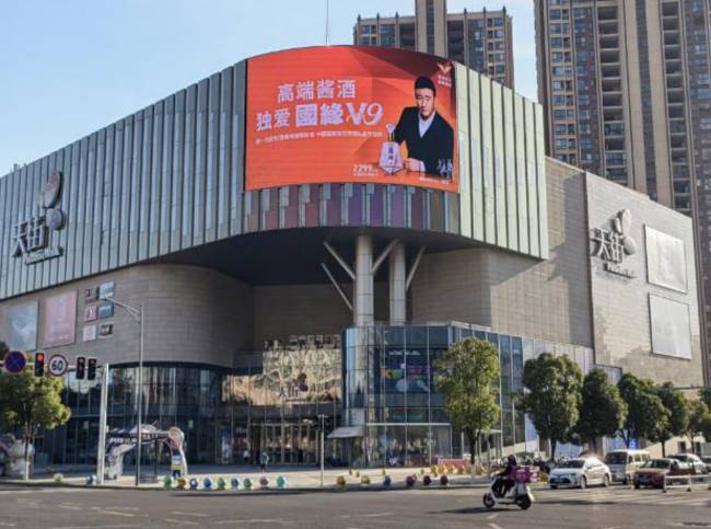 优势分析:位于勤业路与平新路交汇处,大屏正对五星地铁站出入口。商场周边密布高端住宅,人口密集。商场外立面高处的弧形屏幕能更好地与建筑外观融合,增大广告展示角度。