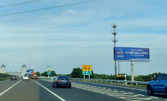 常州沿江高速滆湖服务区入口处高杆立柱大牌广告